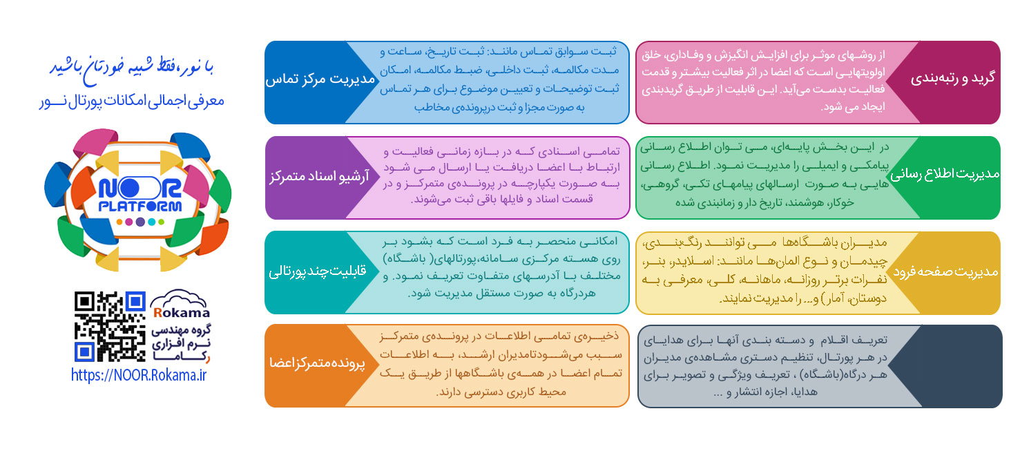 - مدیریت پیشرفته سطوح دسترسی کاربران برمبنای گروه مخاطب و نقش سازمانی